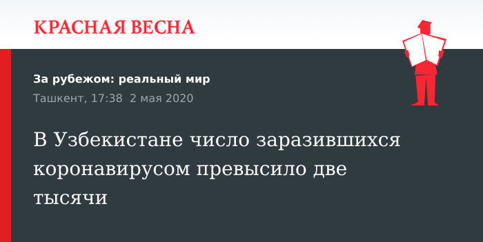 «По состоянию на 2 мая 2020 года 19:00 часов в Узбекистане число случаев заражения коронавирусной инфекцией составляет 2113», — сообщает пресс-служба.
