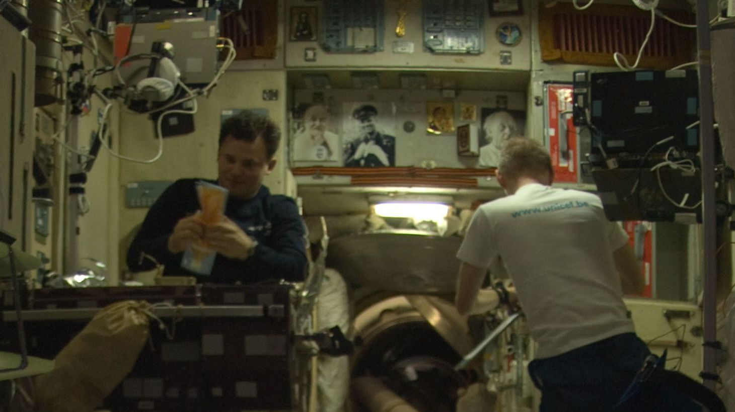 «У нас на борту есть 16-суточный рацион питания, т. е. он повторяется каждые 16 суток. В состав питания входят разные виды рыб, мясо, каши, напитки. Естественно, все это рассчитано на длительное хранение», — рассказал космонавт.