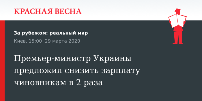 По его словам, правительство Украины предложило уменьшить зарплату чиновников в два раза до конца 2020 года, если на данный момент зарплата госслужащего превышает 10 МРОТ, то есть 47 тыс. гривен (129,4 тыс. рублей).