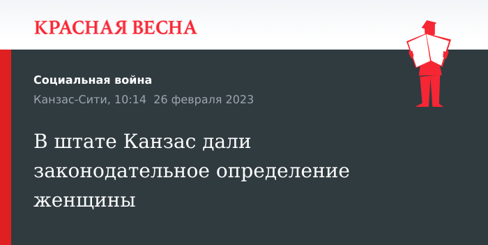 Законопроект о правах женщин, определяющий женщину как биологическую женщину, приняли первыми в США законодатели штата Канзас, сообщила 24 февраля газета The Daily Mail.