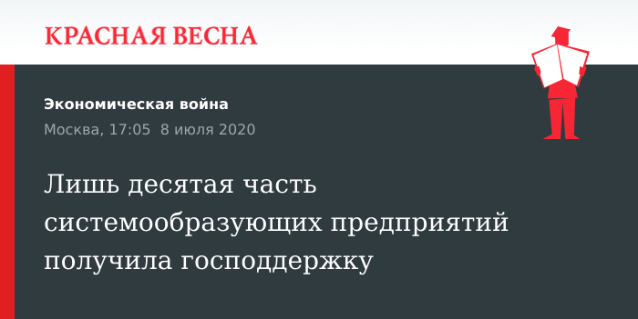 Лишь десятая часть системообразующих предприятий получила господдержку