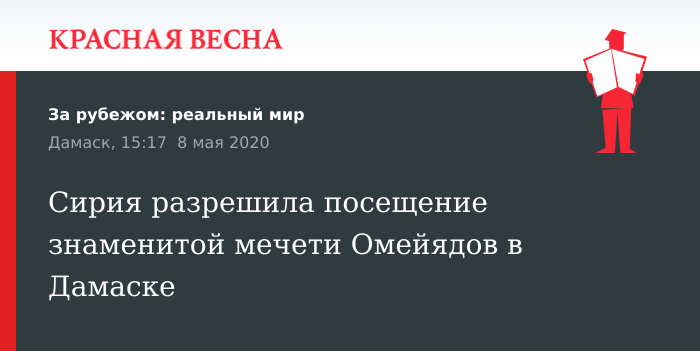 Сирия является одной из первых стран в регионе, которая открыла доступ в мечети на фоне пандемии COVID-19. В стране выявлено 45 случаев заражения новым коронавирусом, три человека скончалось.