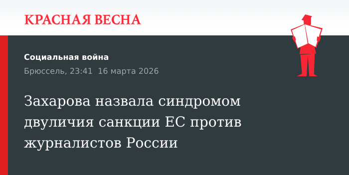 Евросоюз, который игнорирует убийства в Газе и закрывает глаза на удары по иранским тележурналистам, но видит угрозу в российских корреспондентах, страдает хроническим двуличием, заявила официальный представитель МИД РФ Мария Захарова 16 марта в своем Telegram-канале.