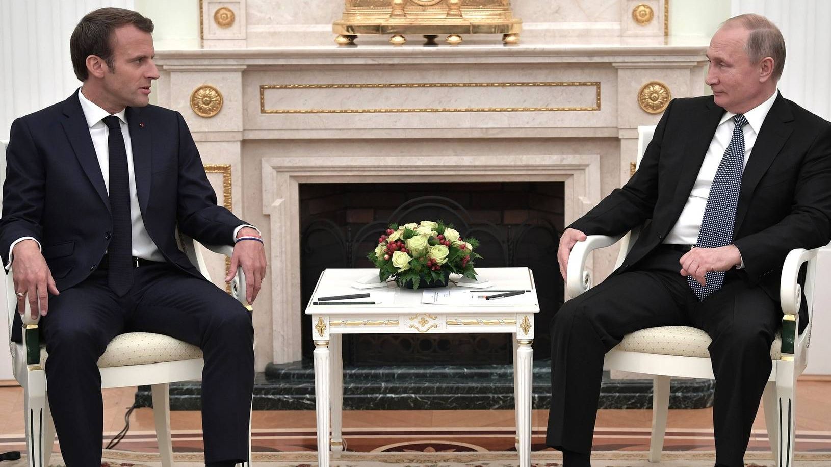 Макрон заявил в ответ, что для восстановления в Европе атмосферы доверия и безопасности Российская Федерация не должна нарушать суверенитет других государств, а она, по словам Макрона, нарушила его в отношении Грузии и Украины.