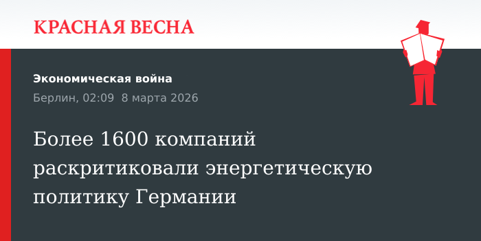 Более 1600 компаний подписали обращение с критикой энергетической политики федерального правительства Германии, 7 марта сообщает «Штерн».