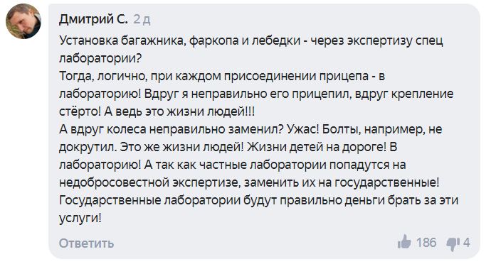 Основная масса пользователей возмущается необходимостью проходить экспертизу в случае, если устанавливается оборудование для перевода работы двигателя на газовое топливо, ставится багажник, фаркоп или лебедка.