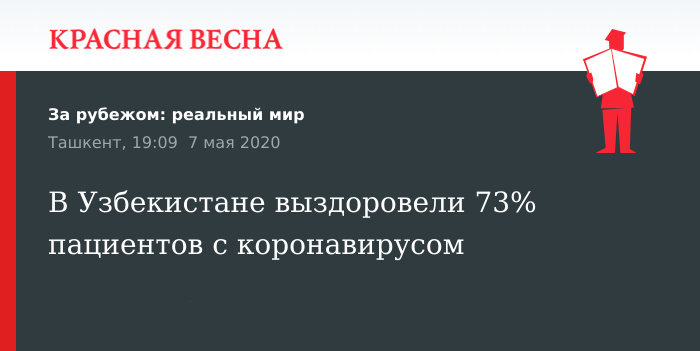 В Узбекистане выздоровели 73% пациентов с коронавирусом
