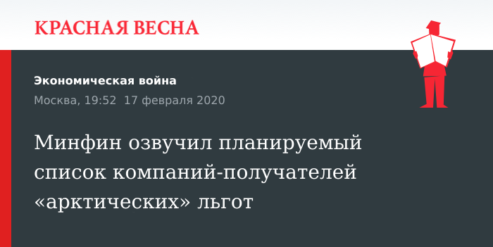 Минфин озвучил планируемый список компаний-получателей «арктических» льгот