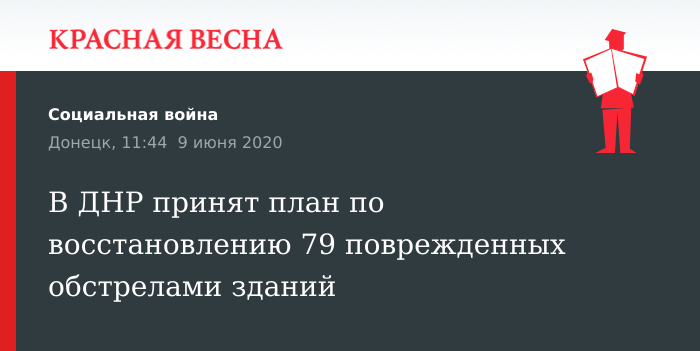 Всего было принято два постановления. Согласно первому постановлению «О реализации мероприятий по восстановлению и капитальному ремонту объектов жилищного фонда и социальной сферы Донецкой Народной Республики в 2020 году» планируется восстановить 46 многоквартирных жилых домов и 33 объекта социальной инфраструктуры.