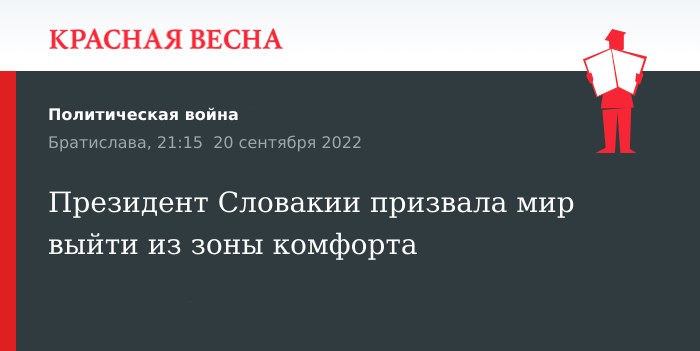 Президент Словакии призвала мир выйти из зоны комфорта