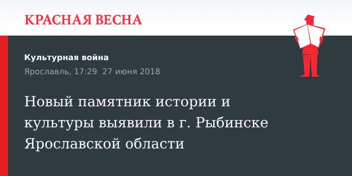 Новый памятник истории и культуры выявили в г. Рыбинске Ярославской области