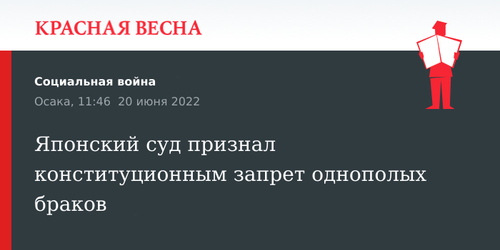 Напомним, что в марте 2021 года окружной суд Саппоро постановил, что гражданское законодательство страны и закон о регистрации семьи, которые не признают однополые браки, нарушают конституционную гарантию равенства перед законом.