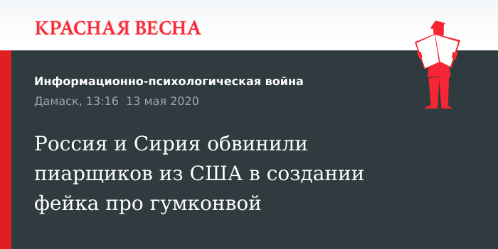 Россия и Сирия обвинили пиарщиков из США в создании фейка про гумконвой