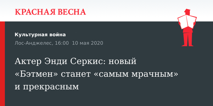 Подробности о новом фильме «Бэтмен» Мэтта Ривза сообщил актер Энди Сёркис в интервью, опубликованном 8 мая на сайте издания LADBible.