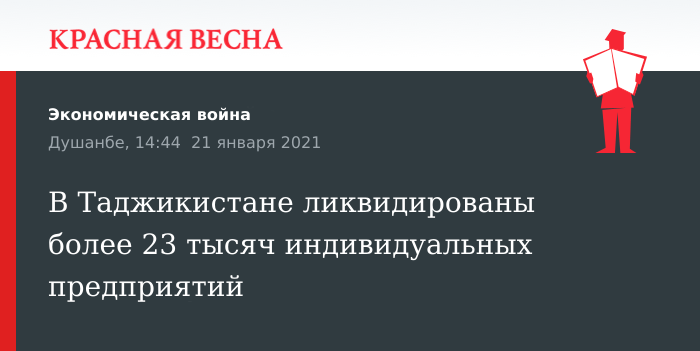 Ликвидацию своих предприятий совершили 23 тысячи индивидуальных предпринимателей за 2020 год в Республике Таджикистан, 21 января сообщает информационное агентство Авеста.