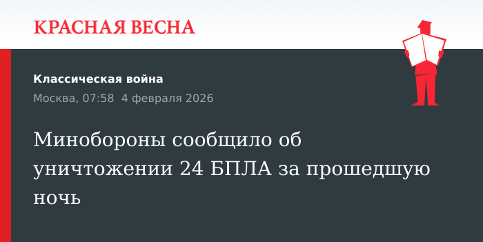 Итоги работы средств противовоздушной обороны за прошедшую ночь опубликовала 4 февраля пресс-служба Министерства обороны России.