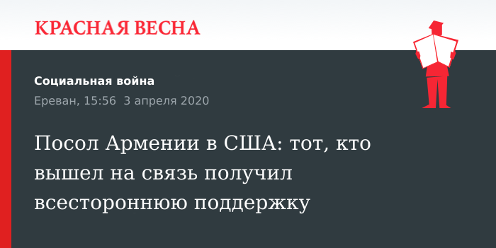 Посол Армении в США: тот, кто вышел на связь получил всестороннюю поддержку