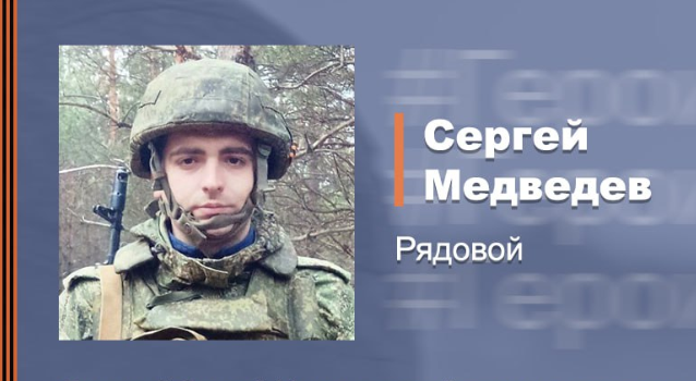 Согласно сообщению, рядовой Сергей Медведев и его товарищи действовали в составе расчета боевой машины реактивной системы залпового огня.