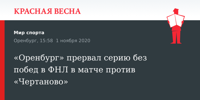 Отметим, на данный момент верхняя часть турнирной таблицы ФНЛ выглядит следующим образом: 1. «Нижний Новгород» — 42 очка (19 матчей); 2. «Оренбург» — 40 очков (19); 3. «Крылья Советов» (Самара) — 39 очков (18); 4. «Торпедо» (Москва) — 37 очков (18);