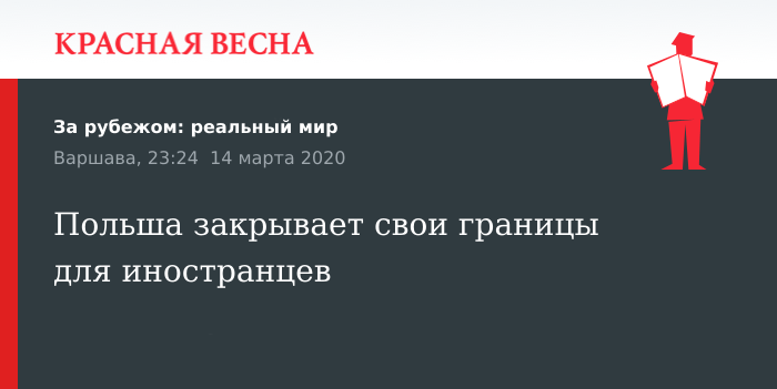 В Польшу не смогут въезжать иностранные граждане, за исключением лиц, проживающих в Польше, супругов и детей польских граждан, дипломатов и водителей грузовиков, перевозящих товары. Закрытие границ не распространяется на поляков, работающих за границей, и на иностранцев, работающих в Польше. Но условие одно — 14-дневный карантин.