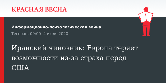 Иранский чиновник: Европа теряет возможности из-за страха перед США