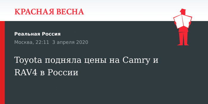 Цены на свои бестселлеры в России поднял японский автопроизводитель Toyota, 3 апреля сообщает аналитическое агентство «Автостат».