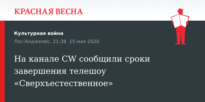 На канале CW сообщили сроки завершения телешоу «Сверхъестественное»