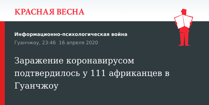Заражение коронавирусом подтвердилось у 111 африканцев в Гуанчжоу