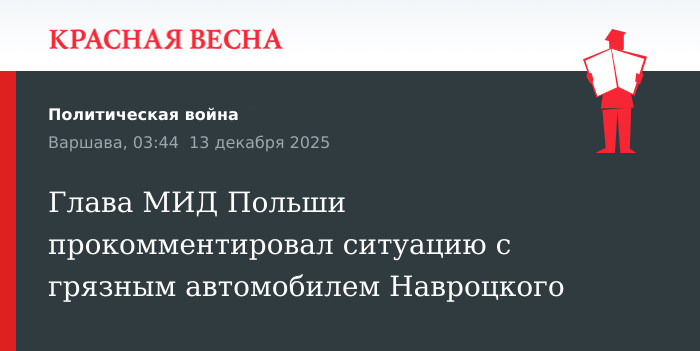 Глава МИД Польши Радослав Сикорский прокомментировал ситуацию с грязным автомобилем, который предоставили власти Латвии польскому президенту Каролю Навроцкому. Соответствующее заявление он опубликовал 12 декабря на платформе X.