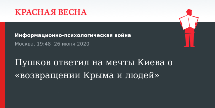 Пушков отметил, пока в Киеве «верят», что вернут «и Крым, и людей», и бодро рассуждают о «деоккупации», которую якобы готовят, Украина уже практически потеряла Донбасс, который вот уже 6 лет живет собственной жизнью.