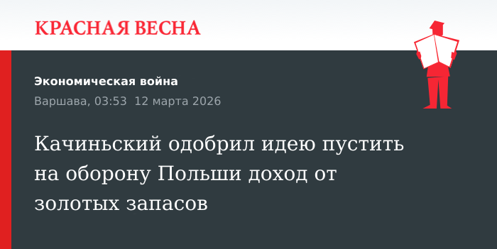 Использование прибыли Национального банка Польши от операций с золотыми резервами для финансирования оборонных нужд возможно и не несет риска инфляции, заявил председатель партии «Право и Справедливость» Ярослав Качиньский, 11 марта сообщает Business Insider.