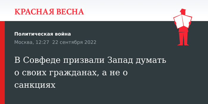 В Совфеде призвали Запад думать о своих гражданах, а не о санкциях