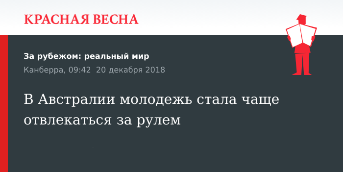 Почти 16% автомобильных аварий, закончившихся госпитализацией пострадавших, происходят в Австралии из-за того, что, находясь за рулем, водители распыляют внимание на посторонние занятия. Об этом пишет 20 декабря газета The Canberra Times.