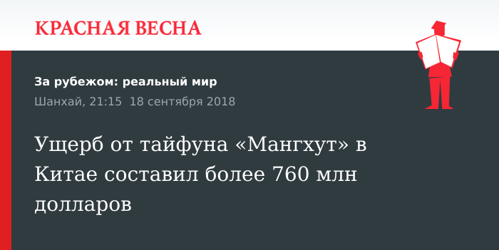 Ущерб от тайфуна «Мангхут» в Китае составил более 760 млн долларов