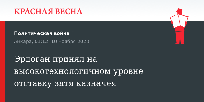 В администрации президента Турции отметили высокие заслуги уходящего государственного казначея. По мнению Эрдогана, благодаря его зятю государство понесло небольшие потери от пандемии коронавируса.