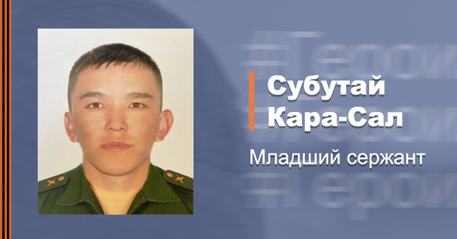 Согласно сообщению, расчет Субутая Кара-Сал принял бой с многократно превосходящими силами бандеровцев, пытавшихся прорваться на подконтрольную российским войскам территорию.
