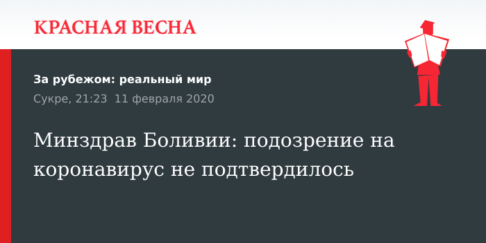 Минздрав Боливии: подозрение на коронавирус не подтвердилось