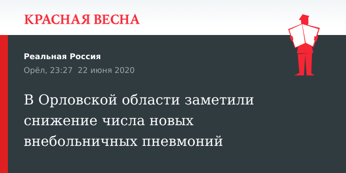 Сокращение числа новых больных COVID-19 c внебольничными пневмониями зафиксировано управлением Роспотребнадзора по Орловской области, заявил глава регионального управления Роспотребнадзора Александр Румянцев 22 июня, сообщает пресс-служба областного правительства