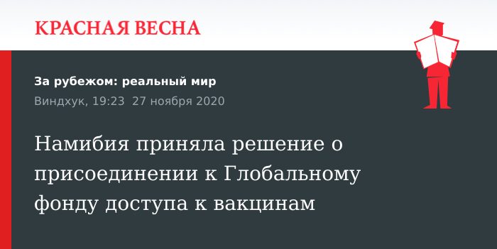 Решение о присоединении к Глобальном фонду доступа к вакцинам против COVID-19 (COVAX) приняли власти Намибии, 26 ноября сообщает Синьхуа.