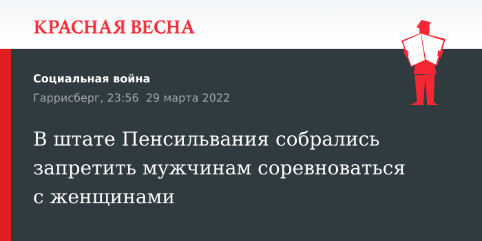 Отметим, что этот закон, вступив в силу, положит хотя бы на время конец выступлениям на женских соревнованиях неудавшегося спортсмена-мужчины Лии Томаса, который, потерпев неудачу в мужском спорте, переключился на женский, став там чемпионом. Томас представляет Университет Пенсильвании.
