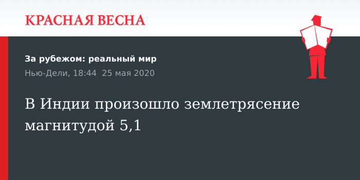 Землетрясение магнитудой 5,1 произошло на востоке Индии 25 мая, сообщает Европейский Средиземноморский сейсмологический центр.