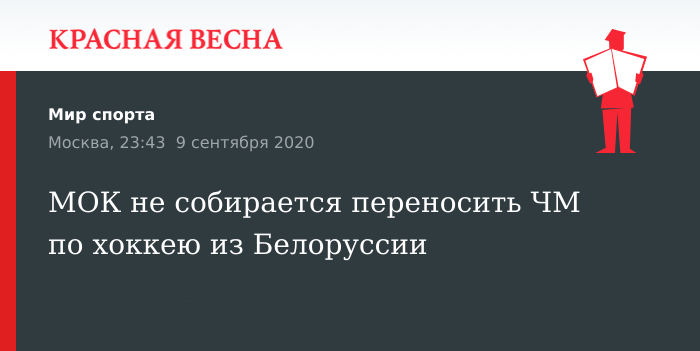 Перенос чемпионата мира по хоккею из Белоруссии пока не рассматривался, заявил президент МОК Томас Бах, 9 сентября сообщается в телеконференции.