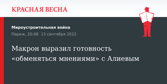Готовность поговорить с президентом Азербайджана Ильхамом Алиевым выразил президент Франции Эммануэль Макрон, заявил представитель французского министерства иностранных дел, 13 сентября сообщает ТАСС.