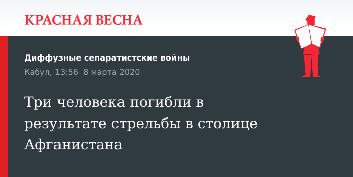 Трое людей, в том числе член провинциального совета из восточной провинции Логар, были убиты и еще один человек ранен в результате обстрела в Кабуле, заявил представитель полиции афганской столицы Фердаус Фарамарц 8 марта, сообщает агентство Синьхуа.