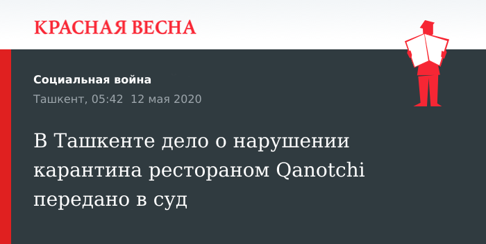 Ранее сообщалось, что ресторан Qanotchi объявил о возобновлении работы с 10 мая. По словам администрации заведения, все санитарно-эпидемиологические нормы при работе в условиях пандемии будут четко соблюдены. Позже публикация, вызвавшая общественный резонанс, была удалена. Спустя некоторое время руководство ресторана сообщило о том, что заведение возобновляло работу в «тестовом режиме», чего изначально сказано не было.