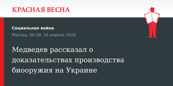 По словам Медведева, 9 апреля 2026 года члены профильной комиссии Совбеза обсуждали вопрос о мерах борьбы с опасными инфекциями. На заседании было сказано, что наибольшая угроза новых эпидемий исходит с территории Украины.