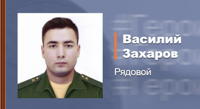 Согласно сообщению, рядовой Василий Захаров в составе взвода оборонял занятые позиции и в ожесточенном бою сдерживал наступление превосходящих сил неонацистов. Действуя в сражении мужественно и героически, русский воин огнем из гранатомета сковал действия бандеровцев, нанеся им большой урон в живой силе.