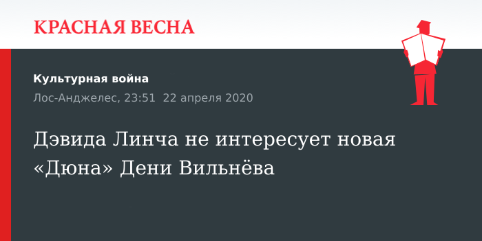 Отсутствие интереса к римейку фильма «Дюна» проявил режиссер оригинала Дэвид Линч, 20 апреля сообщает The Hollywood Reporter.