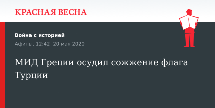 Сожжение турецкого флага в Афинах на демонстрации 19 мая в день памяти геноцида понтийских греков осудил МИД Греции 20 мая.