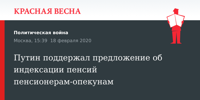 В поддержку предложения законопроекта, предусматривающего индексации пенсий пенсионеров-опекунов, высказался президент России Владимир Путин. Он сделал это 18 февраля во время встречи с главой фракции Госдумы РФ «Единая Россия» Сергеем Неверовым.